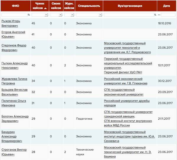 На рис. 6 мы приводим статистику по плагиаторам и диссероделам, которые являются действующими сотрудниками университетов России.