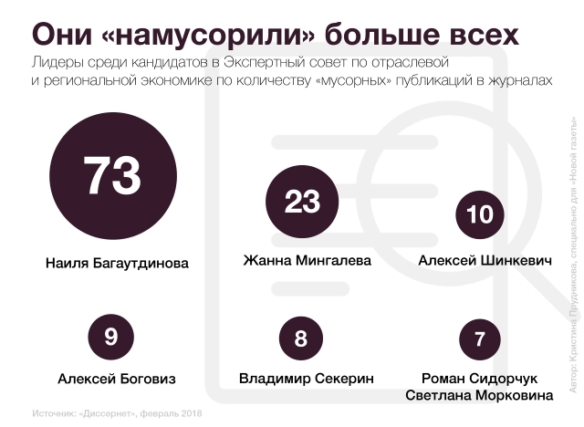 По словам Мацкевича, процесс принятия заявок продлен до 1 марта. «Диссернет», в свою очередь, выпустил еще одну часть доклада, в которой проверил уже имеющихся кандидатов на причастность их к категории «диссероделов» или тех, кто их оправдывает, а также на причастность к публикациям в «мусорных» журналах. По количеству кандидатов, так или иначе замешанных, по данным «Диссернета», в нехороших научных историях, Экспертный совет по отраслевой и региональной экономике все равно удерживает печальное лидерство.